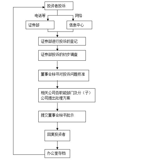 3.3證券部:負(fù)責(zé)對(duì)投資者電話等投訴進(jìn)行接收、登記、確認(rèn)、核準(zhǔn)及進(jìn)行回復(fù)。