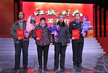 當日,由吉林市委宣傳部、市文明辦主辦,市電視臺承辦的“江城好人”評選活動公開發(fā)布。全國義務植樹模范趙希海、帶著婆婆改嫁的好兒媳王玉珍、全國最美警察陳立軍等14人獲2014 “江城好人”年度標兵榮譽稱號。吉林市委常委、宣傳部長朱淳和市人大常委會副主任鄒鐵軍等領(lǐng)導和嘉賓為獲獎者頒發(fā)了榮譽證書。部分學校師生和基層群眾代表等200余人現(xiàn)場觀看了發(fā)布活動。
